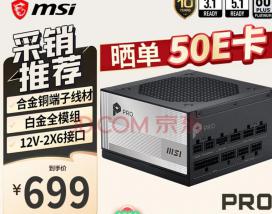 微星PRO A1000PL PCIe5电源 原生12VHPWR 699元