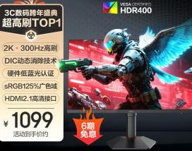 HKC G27H4Plus 27英寸2K 300Hz电竞显示器 京东自营今日特惠