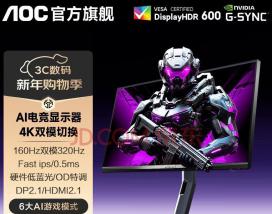 真神器!AOC AG277UX AI显示器 京东自营限时钜惠到手低至2999元