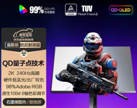 AOC Q27G41ZDF 26.5英寸2K 240Hz电竞屏 现仅需1969.