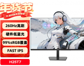 泰坦军团 H25T1C 采用 24.5 英寸 Fast IPS 面板,分辨率为 1920×1080,支持 165Hz 刷新率与 1ms(MPRT)响