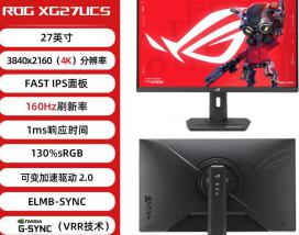 华硕 ROG XG27UCS 27英寸 4K 160Hz 电竞显示器 京东自营今