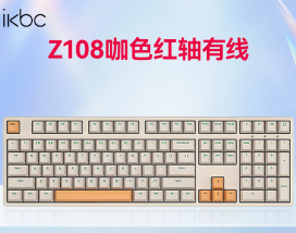 ikbc Z108 咖色为 87 键紧凑布局机械键盘,采用无数字小键盘设计,在保留常用键位的同时缩减横向占用空间,适配桌面局促或需便携的场景。键盘外壳为咖色 A