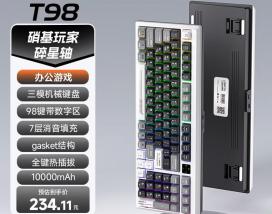 狼途 T98 是面向游戏玩家与办公用户打造的三模机械键盘,采用 98 键紧凑布局兼顾数字小键盘与 F 区功能,定位兼顾便携性与全功能输入的实用外设。产品经过结构