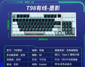 狼途 T98有线机械键盘是一款集电竞、办公与客制化设计于一体的98键多功能键盘,紧凑布局保留完整数字区,兼顾高效输入与桌面空间节省,特别适合追求个性与性能的用户