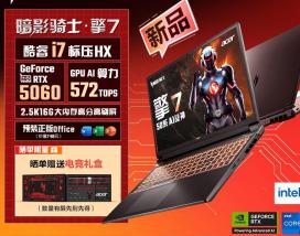 宏碁 暗影骑士擎7 2025款游戏本搭载全新酷睿i7处理器与5060满血独显强强联手,性能释放充沛稳定轻松应对大型游戏与高强度办公设计需求,15.6英寸高刷屏带