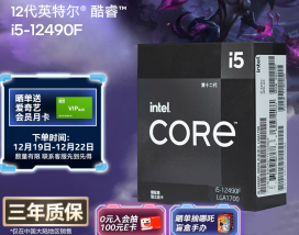 英特尔 酷睿 i5-12490F 6核12线程盒装CPU 今日特惠949元即可入