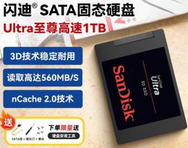 闪迪 至尊高速 1TB SATA3.0固态硬盘,采用高性能TLC颗粒搭配至尊高速3D技术,读取速度出色,大幅提升电脑开机、程序加载及文件传输效率,2.5寸设计兼