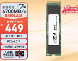 英睿达 E100 480GB固态硬盘深度评测:PCIe 4.0入门首选,444元入手高速存储升级方案