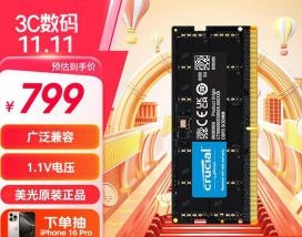英睿达 48GB DDR5 5600黑色普条现正火热促销,原价799元,京东活动售价999元,明晚八点开启秒杀,下单1件实付仅需789元,价格历史新低!英睿达