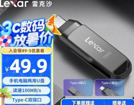 雷克沙 D400 128G U盘京东限时特价到手只要44.9元