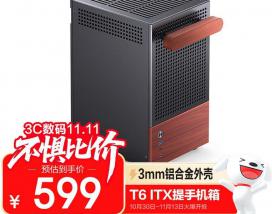 乔思伯 T6黑色ITX提手机箱值得关注!乔思伯 T6机箱采用3mm铝合金外壳搭配8mm北美黑胡桃实木,质感十足。乔思伯 T6支持ITX版型,拥有MINI体积,既