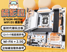 七彩虹 COLORFIRE B760M-MEOW WIFI D5 主板基于Intel B760芯片组打造,采用mATX板型设计,兼容LGA 1700插槽的第12