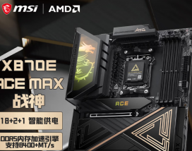 微星 MAG X870E ACE MAX 基于 AMD X870E 芯片组打造,采用 ATX 全尺寸布局并配备超多相 DrMOS 数字供电与全覆盖散热装甲,可在